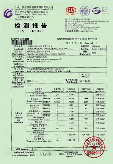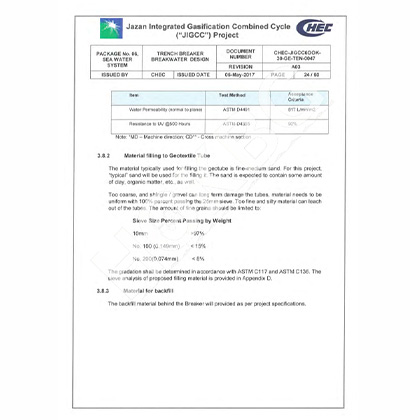 Throughout the project, all mechanical properties of our woven geo tubes met the design requirements. The materials successfully withstood the harsh climate conditions at the site and received high recognition from both China Harbour Engineering Company and the project owner.