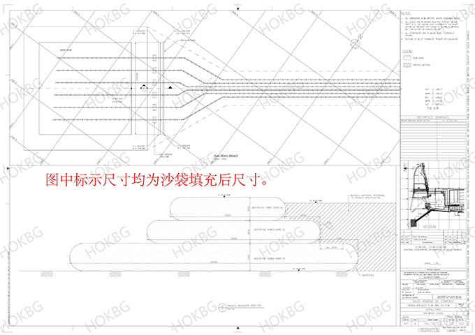 After the large-diameter and ultra-long HDPE drainage pipe was transported to the designated sea area, it was sunk into the foundation trench excavated on the seabed. The design and construction team designed and used high-strength geotube bags. After the geotube bag is filled with sea sand, a large volume of the overall structure is formed, covering the top of the drainage pipe sunk into the foundation trench, preventing the anchoring of ships at sea or the trawling of fishing boats from damaging the drainage network laid in the foundation trench.